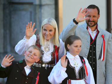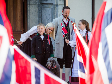 The Crown Prince and Crown Princess and their family started the day at Skaugum Estate, where they greeted the Asker municipality children’s parade from 8:15 am.