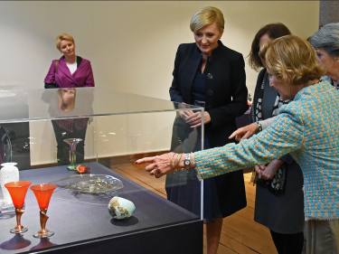 Queen Sonja herself was able take the role of tour guide at Oscarshall. This year’s exhibition at the Queen Joséphine Gallery is entitled Smakebiter, which displays a selection from Queen Sonja’s collection of glass art objects.
