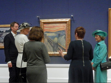 Queen Sonja accompanied Mrs Kornhauser-Duda to the National Museum of Art, Architecture and Design where they viewed the most notable paintings in the collection, including a version of “The Scream” by Edvard Munch. From there they continued on to Oscarshall Summer Palace on the Bygdøy peninsula.