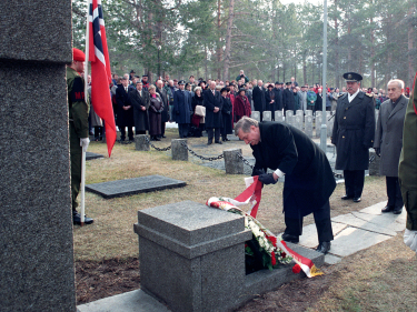 This evening, King Harald, President Duda and Mrs Kornhauser-Duda took part in a ceremony at Håkvik cemetery in Narvik. The cemetery contains monuments commemorating the war efforts of individuals as well as countries. A wreath was laid this evening at the war memorial for the fallen Polish soldiers.