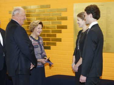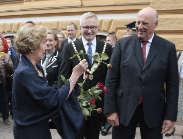 A large group of children greeted the King and Queen with flags and had roses for The Queen when they arrived at the city hall for a luncheon. In his remarks, the King said he was impressed by what he had seen at the university, and he wished them all the best in their collaboration with Norwegian companies and institutions: