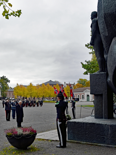 On the first day, it is also traditional for the visiting head of state to lay a wreath at the national monument commemorating the Norwegians who lost their lives in the Second World War. The King and Queen accompanied President Tan and Mrs Tan to Akershus Fortress for the ceremony.