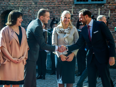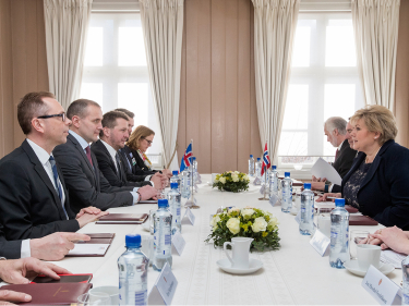 President Jóhannesson met with Prime Minister Erna Solberg prior to the luncheon hosted by the Norwegian Government in honour of the President and First Lady. King Harald, Queen Sonja, Crown Prince Haakon and Crown Princess Mette-Marit were among the guests at the luncheon, which was held at Akershus Castle.