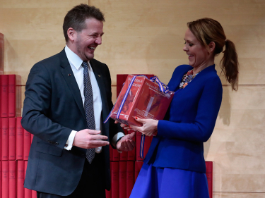 Minister of Culture Linda Hofstad Helleland accepted the Icelandic gift on behalf of the Norwegian public libraries. Photo: Sven Gj. Gjeruldsen, the Royal Court.