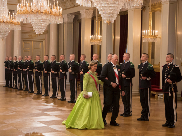 His Majesty The King’s Guard will lead the procession. They will march from the Royal Palace to the Oslo Opera House at 6:15 pm. At 6:30 pm the royal guests from Norway and abroad will drive behind them in a motorcade.