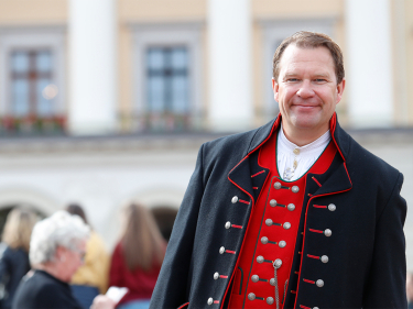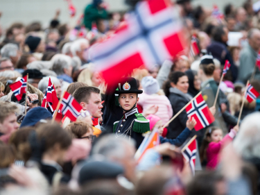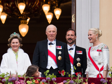 The celebration began earlier in the day on the Palace Square. Several thousand people came to watch His Majesty The King’s Guard and the choral group Oslo Soul Children. Acrobats from Nysirkus Bjerke entertained the public from within the crowd. The highlight of the festivities, however, was when the King and Queen came out on the Palace Balcony together with their family and guests.