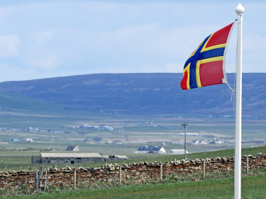 The Flag of Orkney symbolises the islands’ Norwegian and Scottish heritage. Photo: Sven Gj. Gjeruldsen, The Royal Court