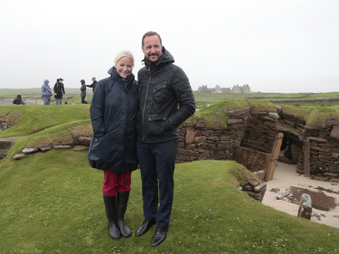 Crown Prince Haakon and Crown Princess Mette-Marit arrived at Skara Brae this morning, where they were led on a journey 5 000 years back in time. Skara Brae was named a UNESCO World Heritage Site in 1999, together with the Stones of Stenness circle and henge and the Ring of Brodgar stone circle and henge.