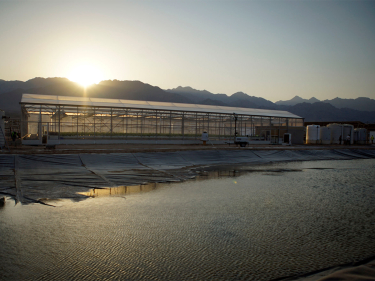 The centre opened in Aqaba today is a full-scale commercial facility for the production of food, fresh water and clean energy. It features two saltwater-cooled greenhouses, revegetation of desert lands, and evaporation ponds for salt extraction. The Sahara Forest Project produces 10 000 litres of fresh water per day using solar energy, and its annual yield of vegetables is expected to reach 130 000 kg.