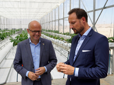 Crown Prince Haakon with Norwegian Minster of Climate and Environment, Mr Vidar Helgesen, who was also in attendance at the opening. Photo: Anders Nybø / Sahara Forest Project