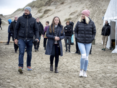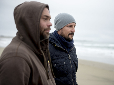 Crown Prince Haakon enjoyed a fine day at the beach. In the morning he was given a guided tour of the area by the driving force behind the event, Tore Kramer, President of Norsk Surfklubb [the Norwegian surfing club].