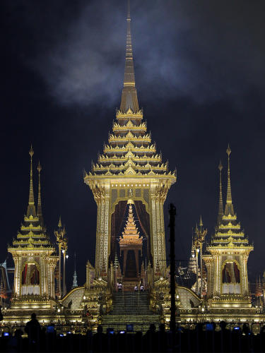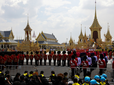 Hundreds of thousands of mourners lined the route of the funeral procession. A gilded chariot from 1795 transported the King’s symbolic funerary urn to a specially built crematorium that has taken one year to construct.
