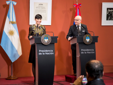 - Our visit has attracted a lot of interest in Norway. It opens up new opportunities for cooperation in several areas. The extensive programme and our large delegation reflect this high level of interest. Quite a few Norwegian companies already have a presence here, and several are currently establishing themselves in Argentina. Agreements aimed at strengthening cooperation in a wide range of fields are being signed during our visit. This includes cooperation on trade and investments, and also cooperation based on defending human rights, promoting rule-based international cooperation and recognising our common responsibility to ensure sustainable development.