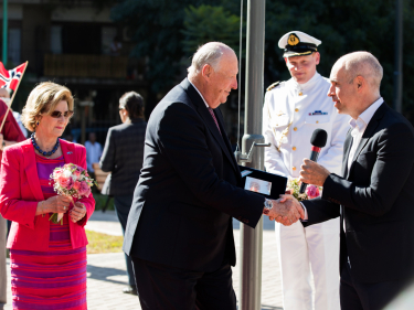 In the afternoon local time, the King and Queen travelled to Plaza de Noruega, where they were received by Mayor of Buenos Aires, Mr Horacio Rodríguez Larreta. The square is named for its proximity to the Royal Norwegian Embassy, and has been refurbished in honour of the State Visit.