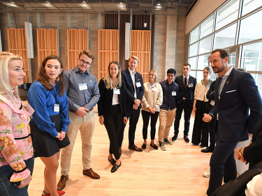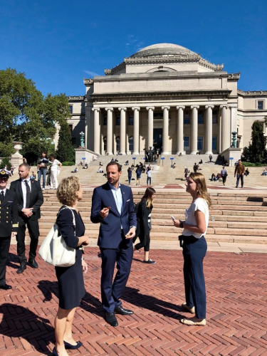 Crown Prince Haakon also had the opportunity to meet some of the Norwegian students at Columbia. Photo: Eileen Barroso / Columbia University