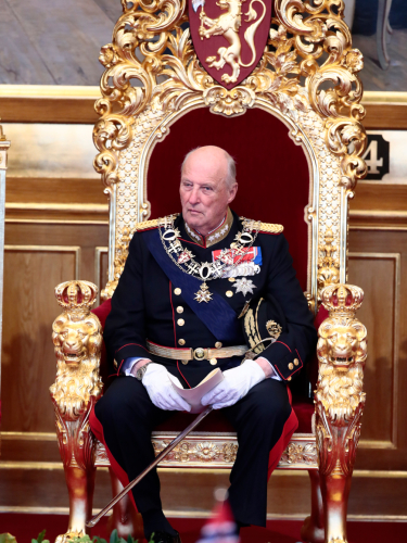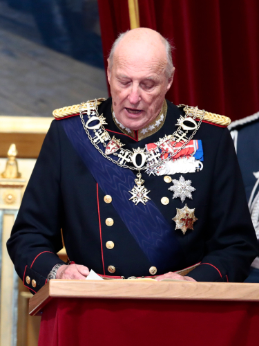 Her Majesty The Queen and His Royal Highness Crown Prince Haakon accompanied King Harald at the ceremony.