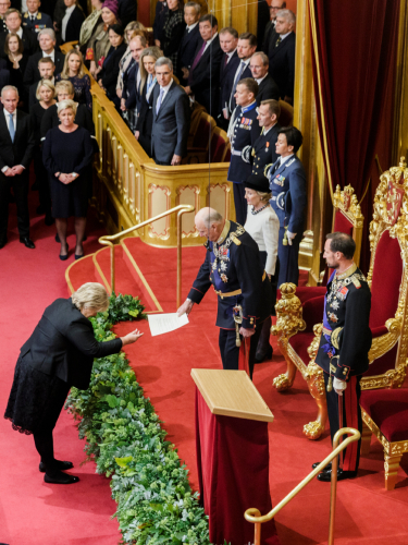 Prime Minister Erna Solberg handed the Speech from the Throne to His Majesty. The speech presents the main features of the Government’s policies for the coming year, and is written by representatives of the Government, not by the King