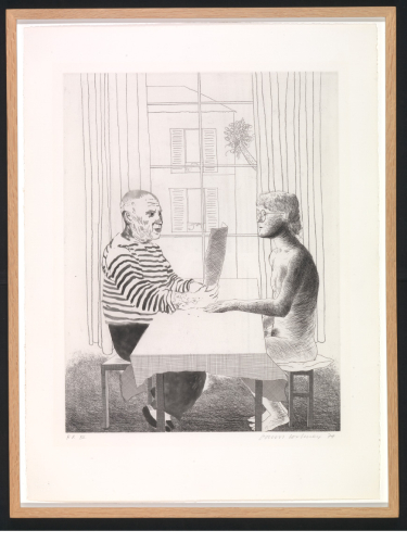 David Hockney made his first prints as a student in 1954 and has since created a large body of exquisite works in traditional printmaking techniques, such as etchings and lithography, as well as experimenting with “homemade” prints, using photocopies and faxes, and computer drawings.