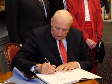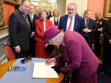 At the conclusion of their visit, Queen Elizabeth and King Harald signed the Society's guest book. Their Majesties are both patrons of the Anglo-Norse Society, which also has a "sister" branch in Oslo, Norway.