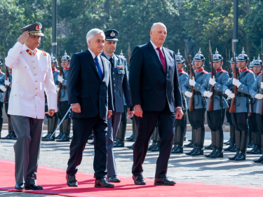 The King and Queen introduced the main Norwegian delegation to the President, who introduced the Chilean delegation to the King and Queen and their retinue. At the conclusion of the welcoming ceremony, the parties entered the presidential palace where discussions were held between Their Majesties and the Presidential couple and meetings were held between delegations. Norwegian Minister of Foreign Affairs Ine Eriksen Søreide and Minister of Fisheries Harald T. Nesvik are accompanying the King and Queen on the visit, along with a large business delegation and representatives of Norwegian civic and cultural life. A number of cooperation agreements were signed after today’s meetings.