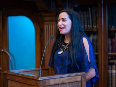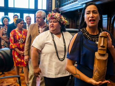 Tarita Alarcon Rapu, Governor of Easter island, sings during the ceremony. Photo: Heiko Junge / NTB scanpix