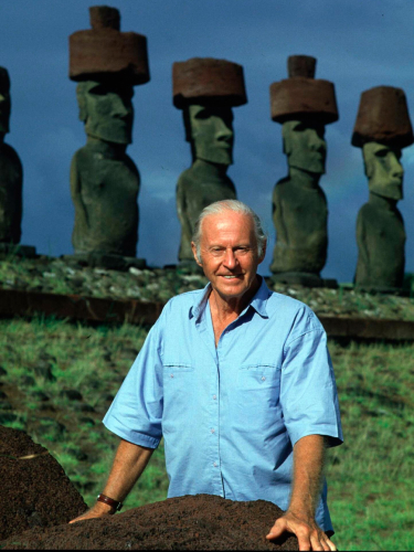 In 1955 the explorer Thor Heyerdahl, already known from his Kon-Tiki and Galapagos Islands expeditions, embarked on a new journey. This time his destination was the Chilean island of Rapa Nui, or Easter Island. The island is known for its enormous stone statues called moai. There are about 900 hundred of them, mostly along the coast. Excavations led by Heyerdahl revealed, among other things, that the statues were not only of heads, as had been believed. They also had bodies – deep under the ground.