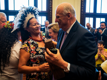 The State Visit to Chile of King Harald and Queen Sonja continued today, with a programme that included both business and culture. The return of material that Thor Heyerdahl had taken with him from Easter Island was a major part of the day’s activities.