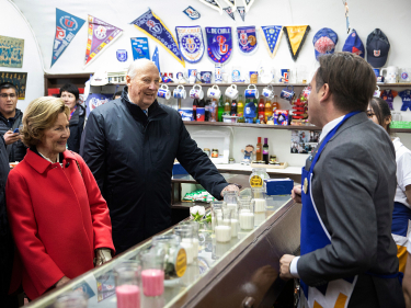 After the formal key presentation ceremony, the mayor took the King and Queen on a walk through Punta Arenas, stopping at Kiosko Roca, a colourful café that serves picados and other local specialities at its bar. The café has been a gathering spot for city residents since the 1950s.