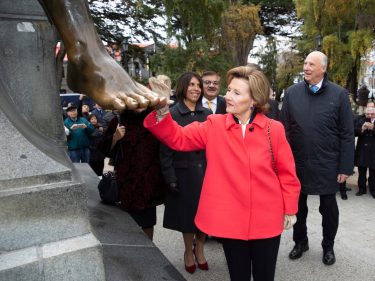 The mayor of Puntas Arenas, Claudio Radonich, told the King and Queen about the Magellan statue before accompanying them to the city hall, where the King and Queen were presented with the keys the city.
