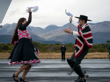 On arrival at Puerto Williams the King and Queen were greeted by folk dancers. Photo: Heiko Junge, NTB scanpix