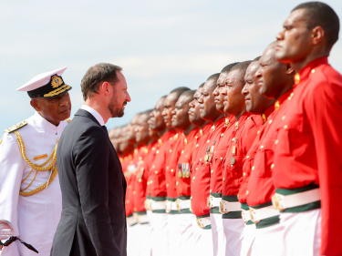 Crown Prince Haakon is on an official visit to the island nations of Tonga, Fiji and Samoa, and landed this morning at Nausori International Airport outside Suva. There he inspected a guard of honour, accompanied by Viliame Naupoto, Commander of the Republic of Fiji Military Forces Crown Prince Haakon inspects a guard of honour, accompanied by Viliame Naupoto, Commander of the Republic of Fiji Military Forces. Photo: Karen Setten / NTB scanpix
