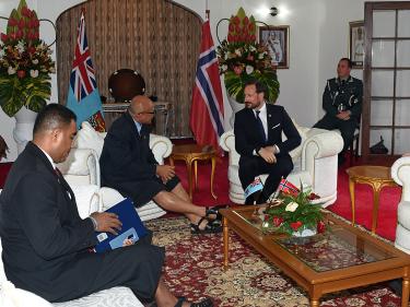 After the ceremony, the Crown Prince met with President Jioji Konrote at his residence, Borron House. Cooperation between Norway and Fiji on ocean and climate issues was a key topic in their talks.