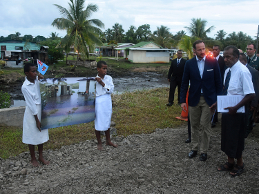 A visit to the village of Daku concluded the official visit to Fiji. For many years, the village has been vulnerable to flooding due to the rising sea level, erosion and heavy rains that cause the river to overflow its banks.