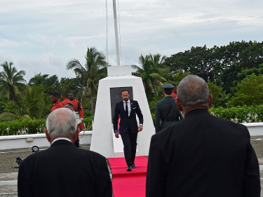 The programme for His Royal Highness The Crown Prince in Fiji today encompassed a wide variety of events, including a wreath-laying ceremony as well as sea, sport and theatre activities. The flood-prone village of Daku made a particularly strong impression.