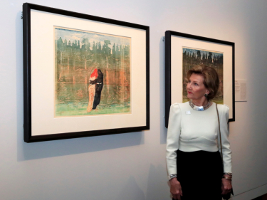 After the opening, Queen Sonja was given a tour of the exhibition by curators Giulia Bartrum and Ute Kuhlemann Falck.