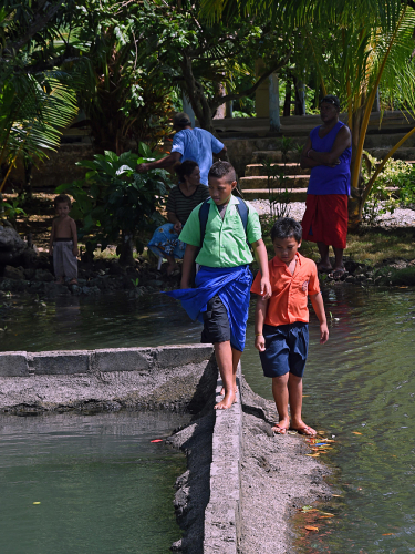 In the village of Moata’a, the tide has been reaching ever farther inland. Salt water now covers areas where, some years back, people could walk without getting their shoes wet. The route children used to take to school is now submerged.