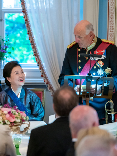 This evening a gala dinner is being held at the Royal Palace in honour of the Korean President and First Lady. King Harald lauded Korea and the President for the implementation of the 2018 Winter Olympics: