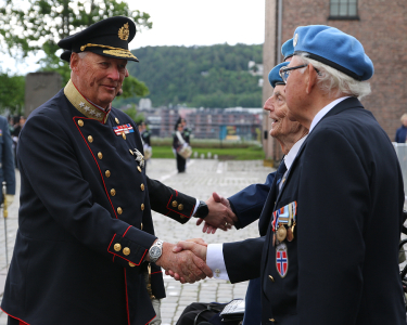 King Harald greets veterans of the NORMASH field hospital. Photo: Sara Svanemyr, The Royal Court.