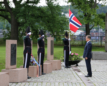 It is a tradition for the visiting head of state to start their visit by laying a wreath at the national monument at Akershus Fortress to commemorate those who gave their lives for Norway. Today’s ceremony at Akershus Fortress included a second wreath-laying as well.