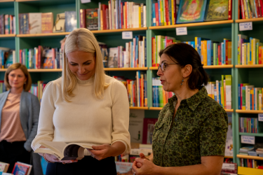 Crown Princess Mette-Marit participates regularly in a wide variety literary events – from reading time for children in the Palace Park, to literature festivals and library visits. The Norwegian Library Association is one of the organisations under her patronage. The Crown Princess also work to arrange meetings about Norwegian literature during official visits to other countries.
