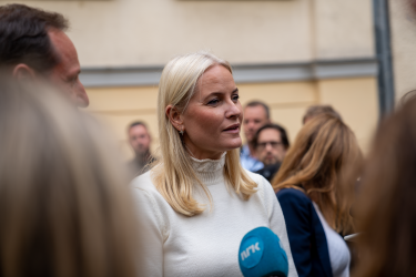 The Crown Princess talked to the press after the visit. (Foto: Simen Løvberg Sund / Det kongelige hoff)