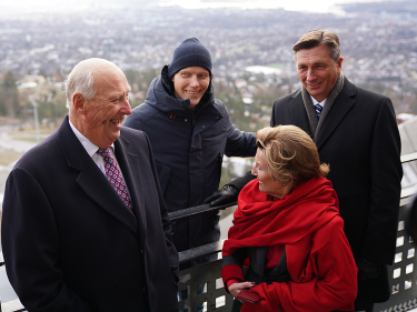 Slovenia and Norway share a passion for ski jumping. Events at Planica – the big ski flying hill in Slovenia – are eagerly watched by many Norwegians. This morning, the King and Queen and President Pahor visited the Holmenkollen ski jump, where for many years great Slovenian jumpers such as Peter Prevc, Robert Kranjec and Jurij Tepeš have added to the excitement.