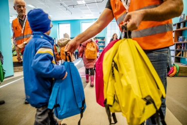 At the old library, the children were given colourful backpacks full of children’s books. Next stop: Oslo’s new Deichman Bjørvika public library. Photo: Stian Lysberg Solum / NTB Scanpix.