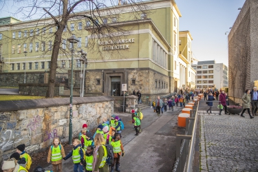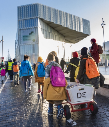 Toting colourful backpacks filled with books, the children marched from the old Deichman main library at Hammersborg and through Oslo city centre before arriving at the new Deichman Bjørvika public library – situated directly between Oslo Central Station and the Opera House.