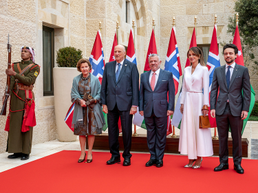 Today Their Majesties the King and Queen were welcomed to Jordan by Their Majesties King Abdullah II and Queen Rania. It is the first state visit to the Middle East for King Harald and Queen Sonja.