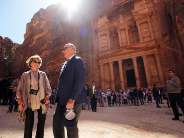 Surrounded by sandstone cliffs, halfway between the Red Sea and the Dead Sea, lies the ancient city of Petra. Their Majesties The King and Queen concluded their state visit to Jordan at one of the world’s “new” seven wonders.