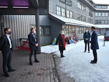 After the first briefing, King Harald, Queen Sonja and Crown Prince Haakon were accompanied to a new meeting room to be briefed by municipal officials and voluntary organisations on the care provided to persons affected by the catastrophe, including family members.