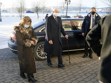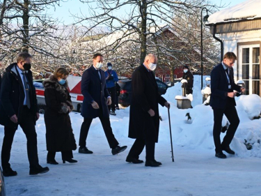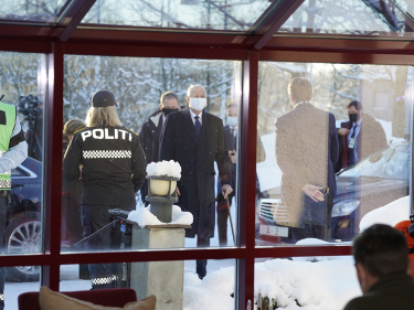 The King and Queen arrive at Olavsgaard Hotel to meet people affected by the Gjerdrum landslide. Photo: Lise Åserud / NTB