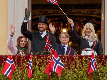 The Royal Family watched the celebration from the Palace Balcony and sang along as people all across Norway sang the national anthem.