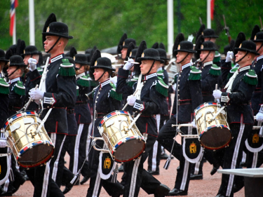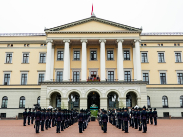 His Majesty The King’s Guard greets the Royal Family from the Palace Square. Photo: Lise Åserud, NTB scanpix